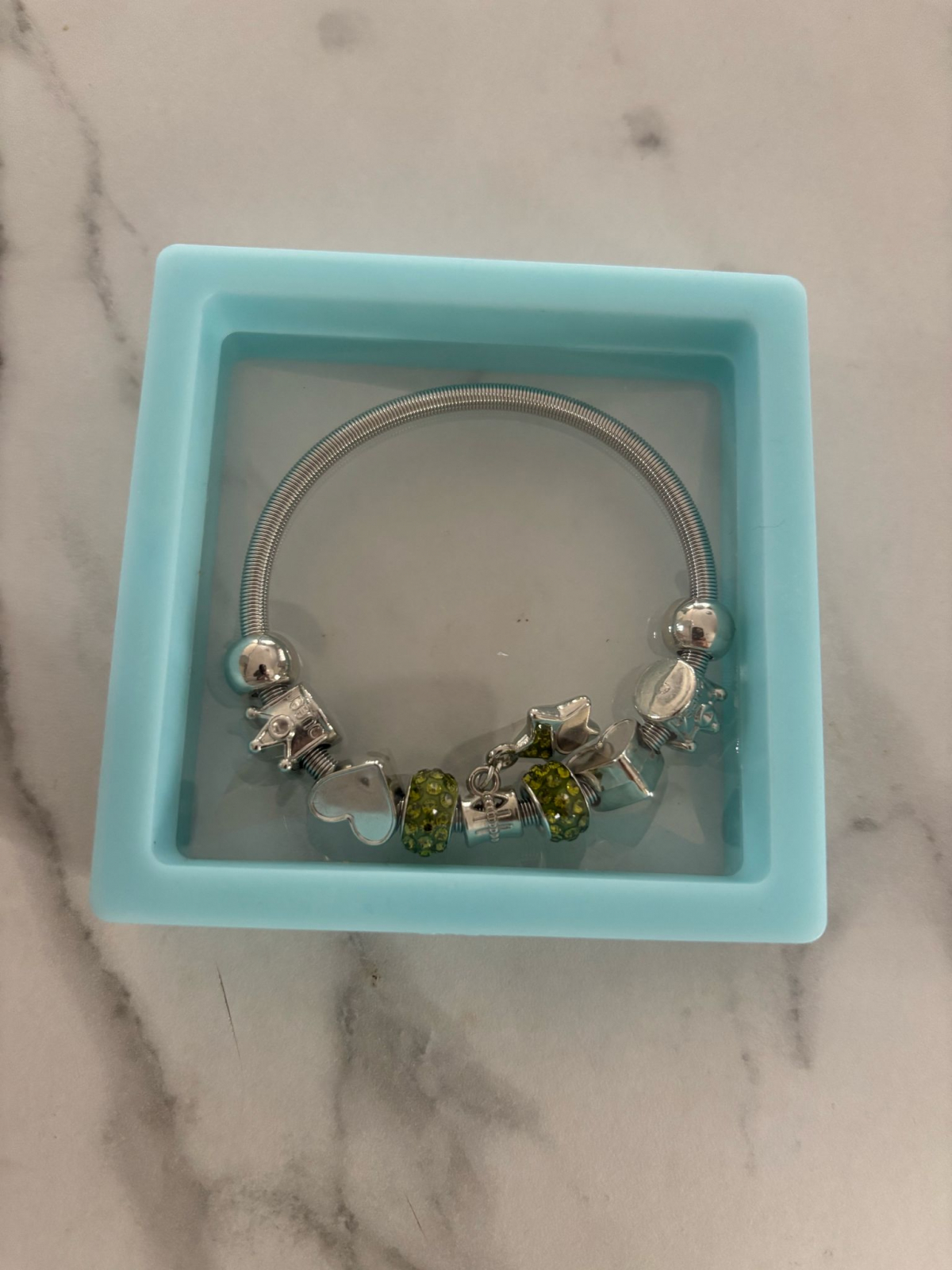 Sistemul de închidere este sigur, de tip biluță metalică, iar charmurile pot fi schimbate ușor pentru a personaliza brățara după starea de spirit sau ocazie.