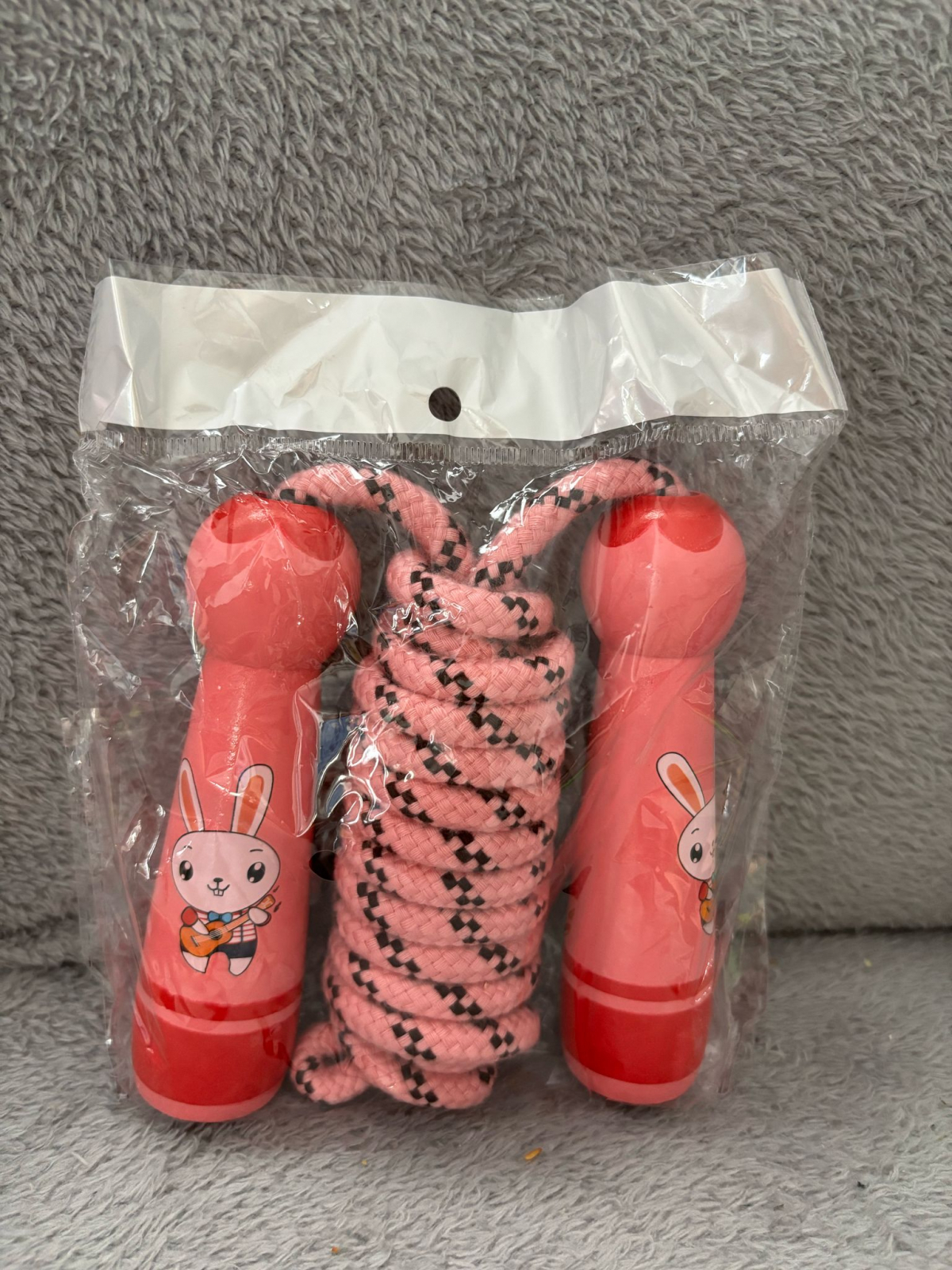 Transformă joaca într-o activitate plină de energie cu această coardă de sărit roz pentru copii, decorată cu un iepuraș adorabil! Perfectă pentru activități în aer liber sau în casă, această jucărie clasică stimulează coordonarea, echilibrul și rezistența fizică a celor mici.