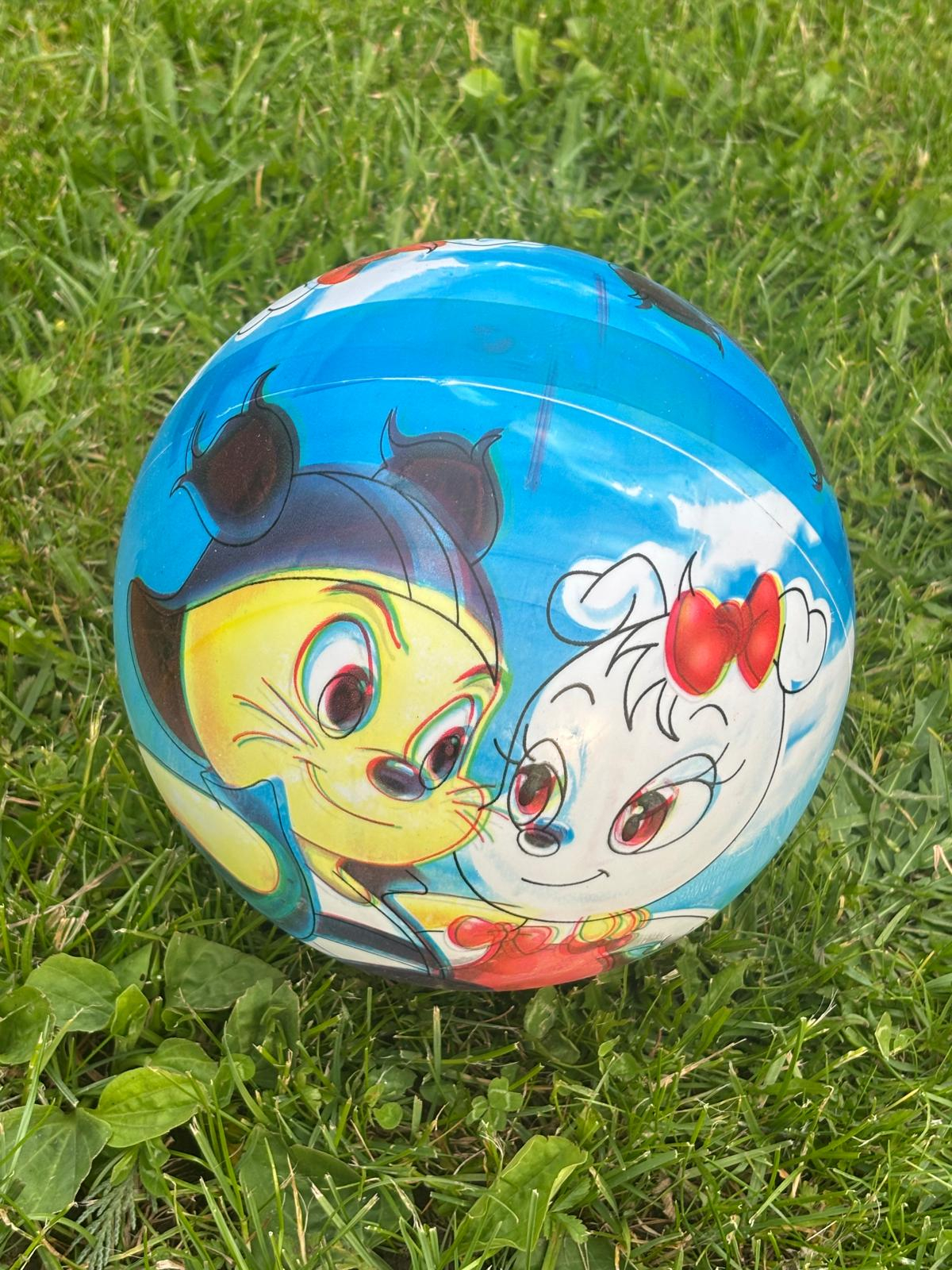 Această minge este perfectă pentru ore întregi de distracție! Cu un design viu colorat și două personaje desenate în stil animat, mingea captează imediat atenția celor mici. Este fabricată din plastic ușor, ceea ce o face sigură pentru utilizare atât în interior, cât și afară — în parc, curte sau la plajă.