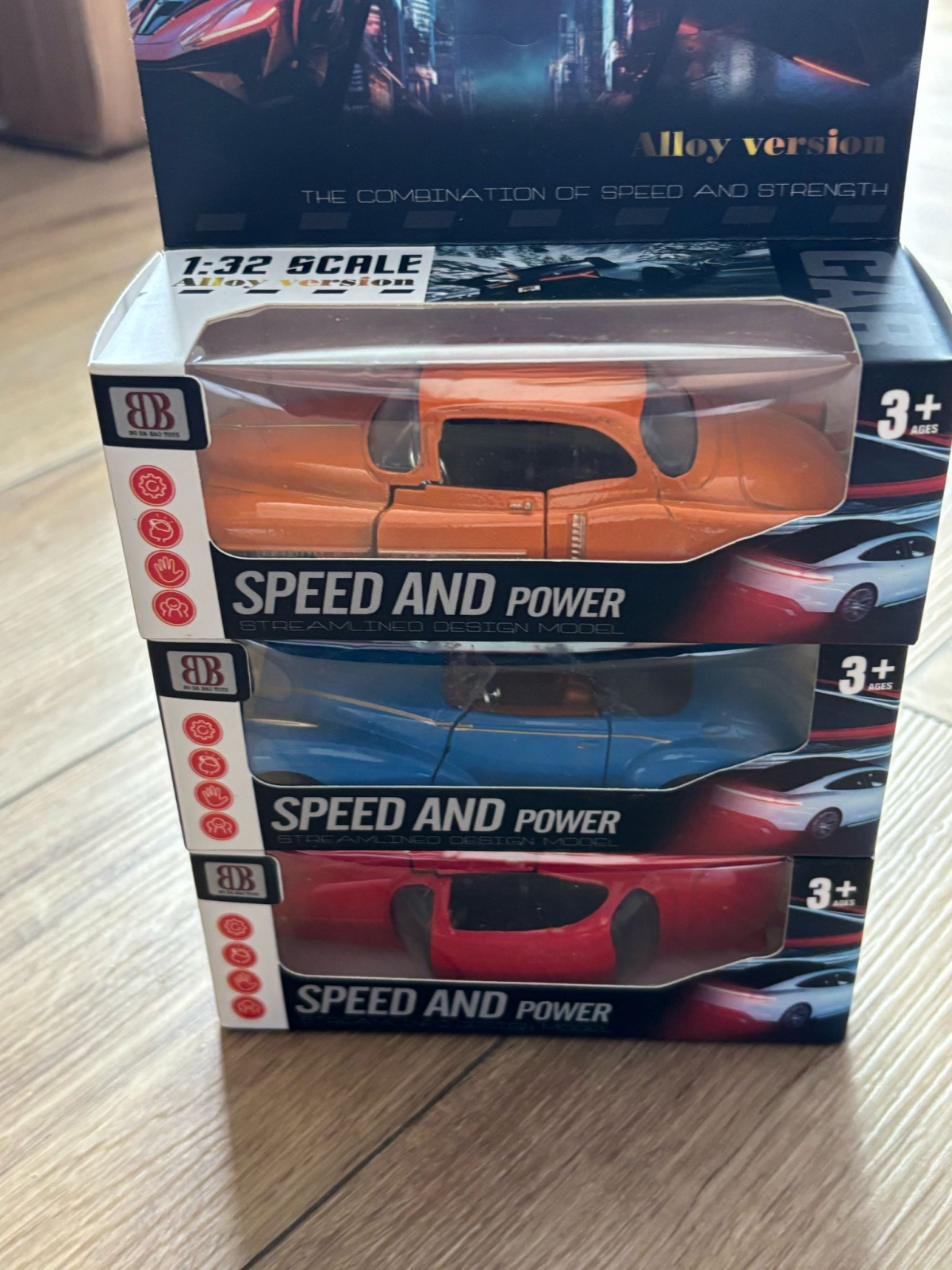Disponibile în culori vibrante: portocaliu, albastru sau roșu, aceste mașinuțe sunt o alegere excelentă pentru copiii pasionați de viteză și pentru colecționarii de modele auto.