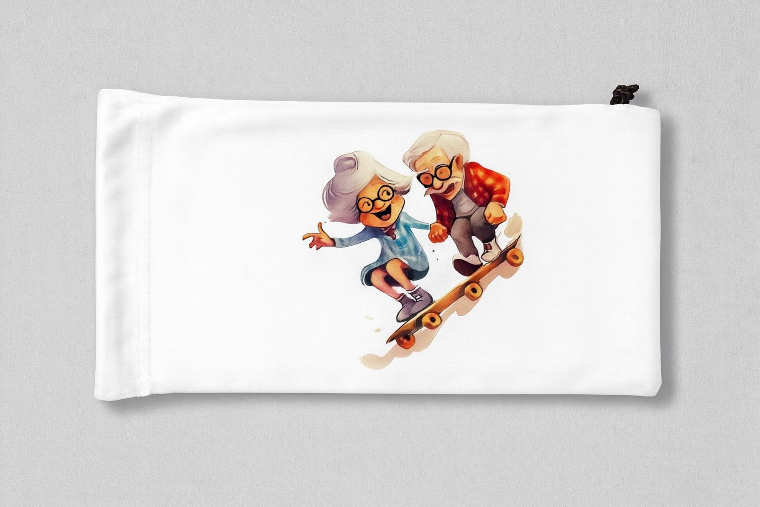 Această husă de ochelari este creată special pentru a aduce un zâmbet pe chipul bunicilor. Realizată din material textil alb, moale și rezistent, protejează lentilele împotriva zgârieturilor și prafului. Închiderea cu șnur asigură o utilizare ușoară și sigură, iar imprimeul cu bunici simpatici și plini de viață transformă accesoriul într-un cadou amuzant și memorabil. Ideală pentru ochelari de vedere sau de soare, husa îmbină utilul cu plăcutul, fiind un mic gest prin care îți poți arăta dragostea și aprecierea pentru bunici .Dar mai ales poate fi un cadou special persoanelor dragi.