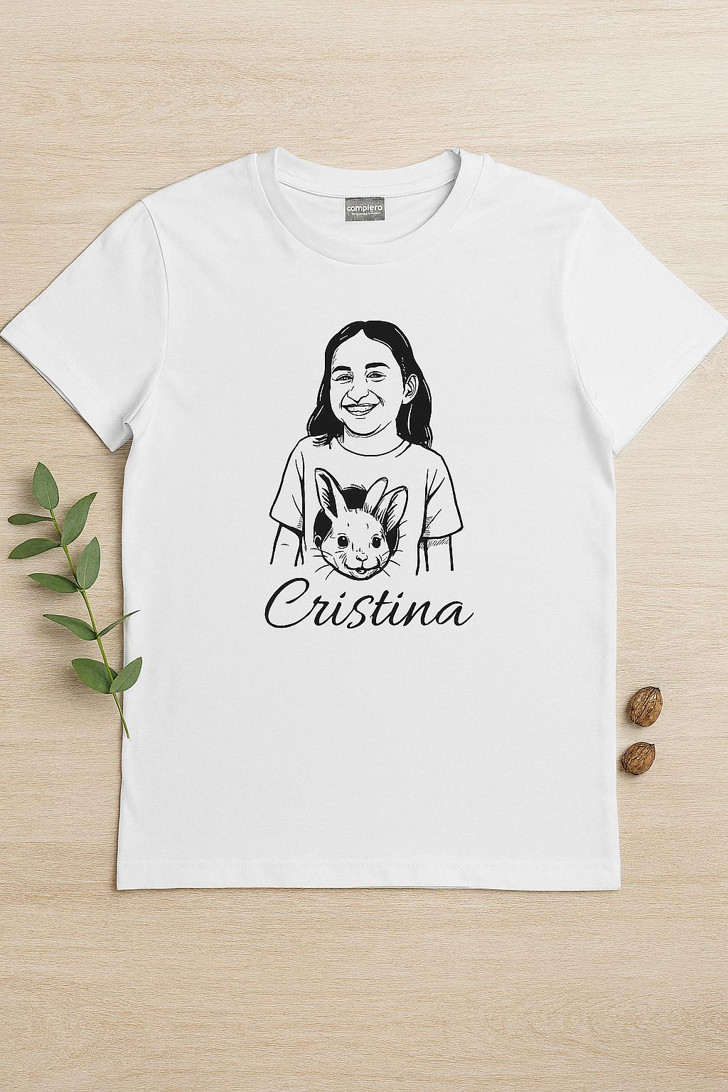 Creează un cadou cu adevărat special! Acest tricou personalizat cu portret ilustrat și nume este alegerea perfectă pentru un look unic, plin de personalitate și farmec.