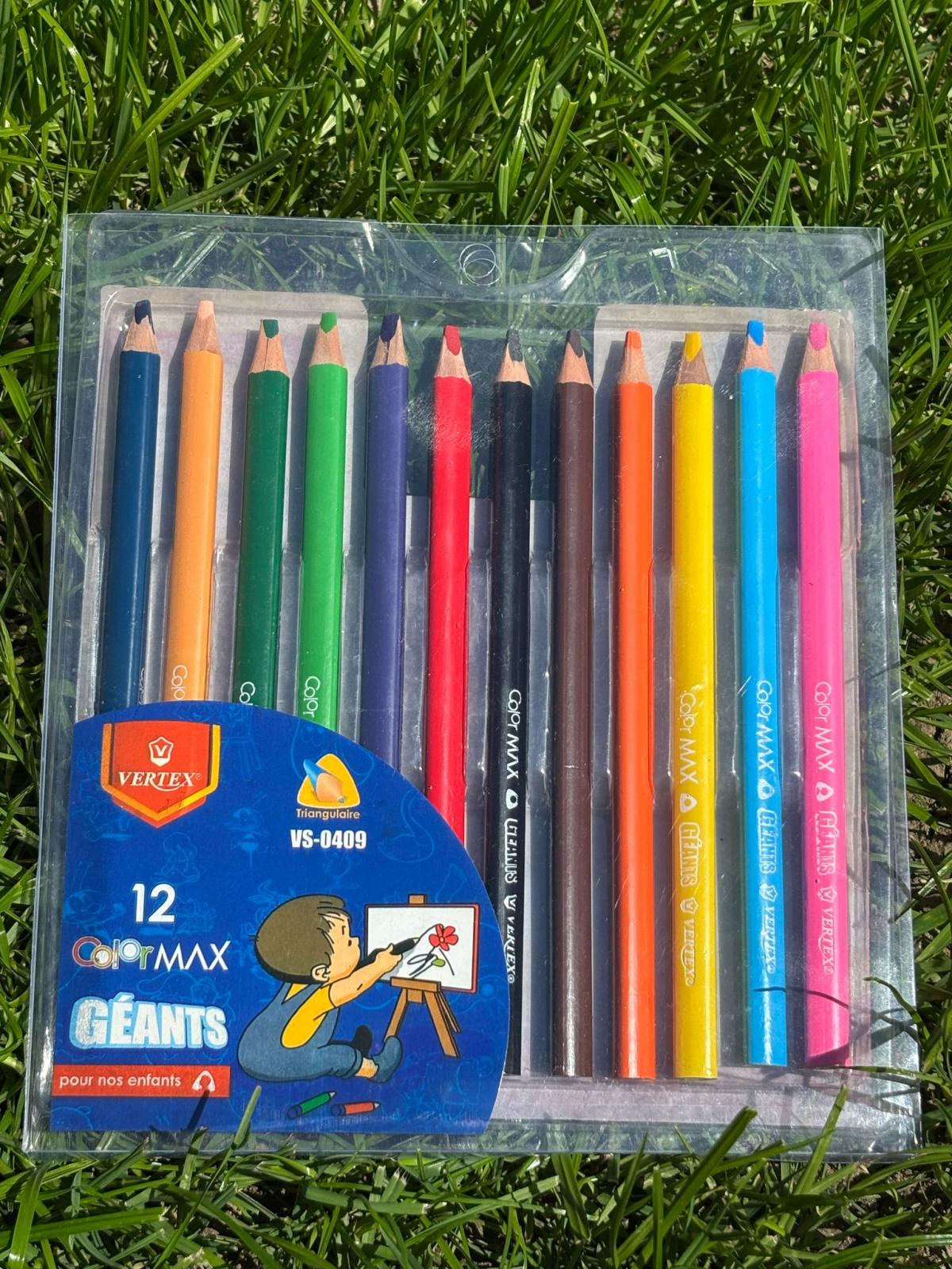 Acest set de 12 creioane colorate groase este alegerea perfectă pentru micii artiști! Cu un design triunghiular ergonomic, creioanele sunt ușor de ținut în mână și ideale pentru mâinile celor mici. Culorile sunt intense, iar mina este groasă și rezistentă, special concepută pentru desenul copiilor.